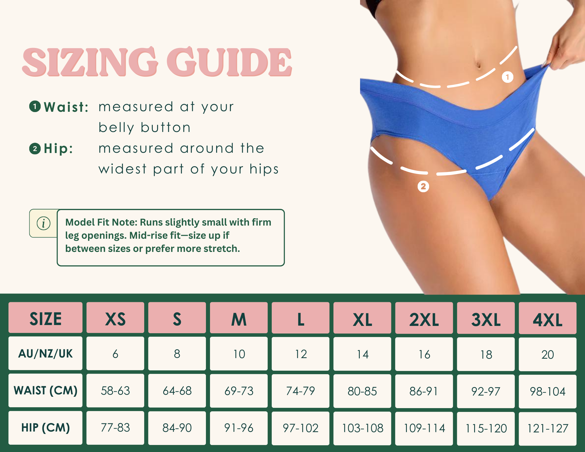 Sizing can vary between styles, so we recommend checking our size chart and giving yourself a quick measure instead of relying on your usual AU sizeโespecially if youโre ordering multiple styles.